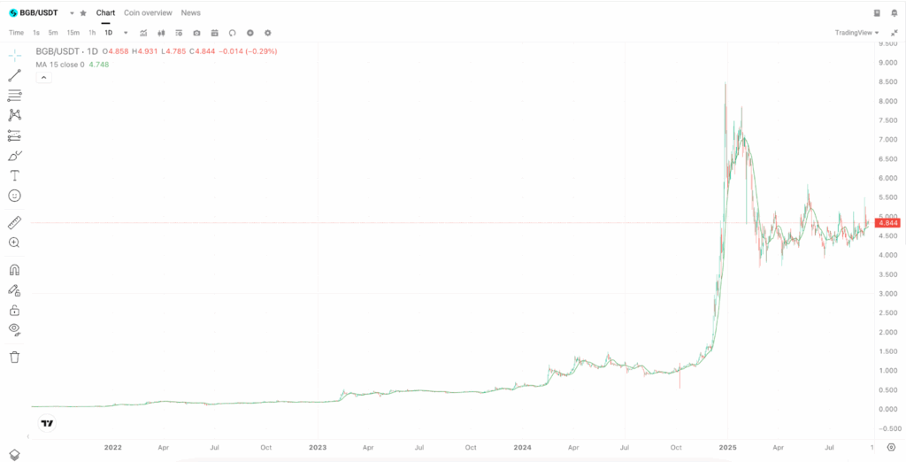 Thị trường đã phản ứng ngay lập tức và rõ rệt. BGB đạt mức cao nhất mọi thời đại tại $8,49 chỉ vài ngày sau đợt đốt, khi nhà giao dịch nhận thấy sự thay đổi cơ bản đang diễn ra. Đây là phản ứng hợp lý trước tình trạng khan hiếm được thiết kế cho một tài sản có tiện ích thực tế ngày càng tăng.