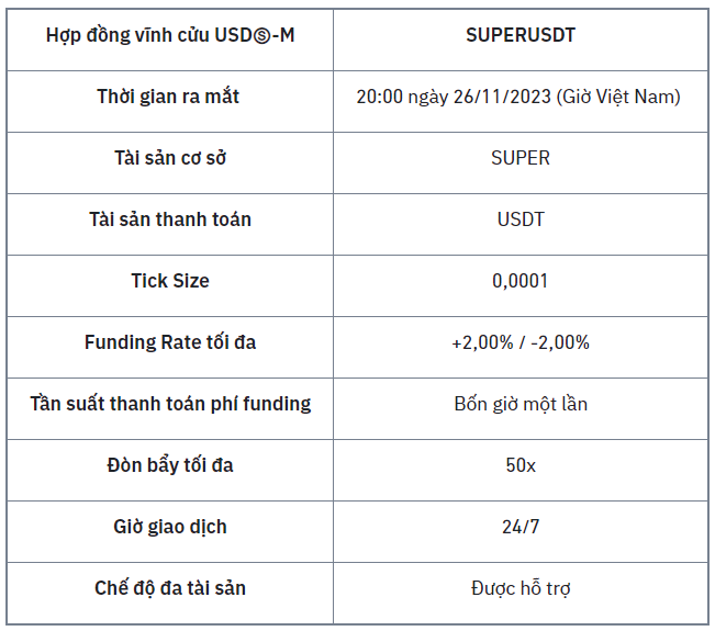 Người dùng có thể xem thêm thông tin về Hợp đồng vĩnh cửu SUPER USDⓈ-M trong bảng bên dưới: