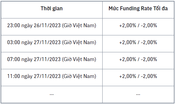 Tần suất thanh toán phí funding là bốn giờ một lần..