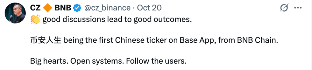 Sự dịch chuyển này đánh dấu một cột mốc quan trọng đối với lĩnh vực memecoin. Khi hệ sinh thái Binance ngày càng tích hợp theo chiều dọc–với thanh khoản sàn giao dịch, nhân tài đổ vào và nguồn tài trợ cho hệ sinh thái lớn hơn–sự cộng hưởng này đang thu hút sự chú ý trên toàn cầu và thậm chí truyền cảm hứng cho các đối thủ cạnh tranh từ phương Tây như Coinbase ra mắt các mô hình tương tự.