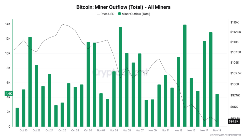 Trong khi các nhà đầu tư nhỏ lẻ đầu hàng, dữ liệu trên chuỗi cho thấy những nhà đầu tư kỳ cựu đang tích lũy mạnh mẽ. Theo CryptoQuant, cá voi đã tích lũy được hơn 375.000 BTC trong 30 ngày qua khi giá yếu. Chỉ riêng tuần ngày 13/11 đã chứng kiến đợt tích lũy hàng tuần lớn thứ hai trong năm 2025 của cá voi với hơn 45.000 BTC. Mẫu hình này phản ánh tháng 03/2025, khi cá voi mua mạnh trong thời kỳ suy giảm mạnh trước khi tăng lên mức cao nhất mọi thời đại.