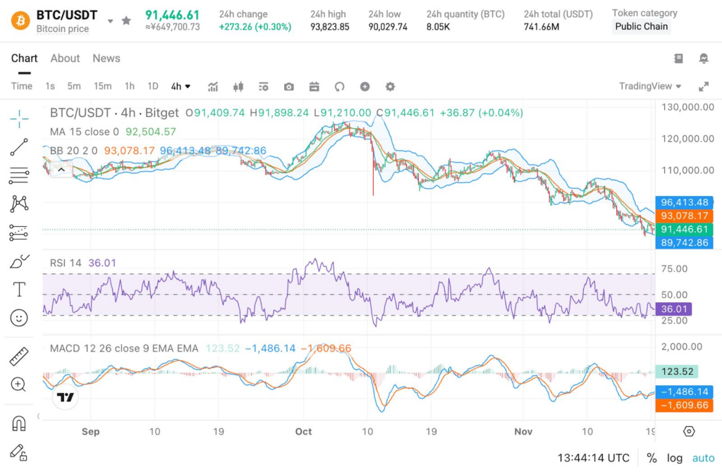 Các chỉ báo kỹ thuật xác nhận mức quá bán. RSI giảm xuống dưới 29 vào ngày 18/11/2025, nằm sâu trong vùng quá bán (dưới 30), trong khi biểu đồ MACD cho thấy đà giảm mạnh tại (nhưng sự hội tụ cho thấy xu hướng giảm có thể đang mất đà). Quan trọng nhất là tỷ lệ funding lần đầu tiên giảm xuống mức âm vào năm 2025, một tín hiệu đáy điển hình xảy ra trong vụ sụp đổ tháng 03/2020 (-0,309%), Silicon Valley Bank sụp đổ vào năm 2023 và trước các đợt tăng giá lớn vào năm 2024. Funding âm có nghĩa là bên short thanh toán cho bên long, hay nói cách khác là vị thế giảm giá đang bị đẩy quá mức.