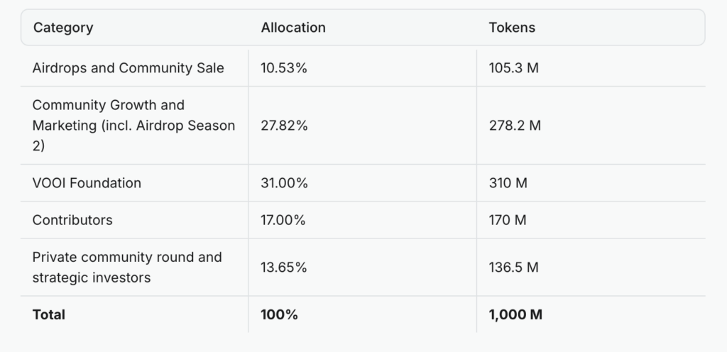 VOOI có token tiền điện tử riêng, được gọi là $VOOI. Token này là trung tâm của hệ sinh thái, mang đến cho chủ sở hữu các quyền lợi đặc biệt và tiếng nói về tương lai của dự án. Tóm lại, token này được thiết kế sao cho càng nhiều người sử dụng nền tảng, thì càng nhiều giá trị sẽ được chuyển về cho các thành viên tích cực trong cộng đồng.