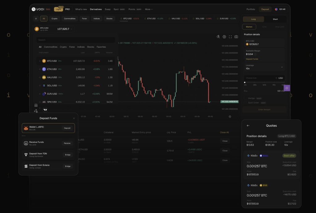 Ý tưởng cốt lõi rất đơn giản: nạp tiền một lần, giao dịch ở bất cứ đâu. Bạn có thể mở giao dịch, hoán đổi tài sản và kiếm lợi nhuận từ một nơi duy nhất, đồng thời luôn giữ quyền kiểm soát hoàn toàn tiền của bạn. VOOI đảm nhiệm toàn bộ các công việc hậu cần phức tạp phía sau hậu trường. Tầm nhìn của dự án là mang đến trải nghiệm giao dịch dễ dàng như một sàn giao dịch tập trung (CEX), nhưng với tính bảo mật của DeFi, nơi bạn luôn sở hữu khóa của riêng bạn.