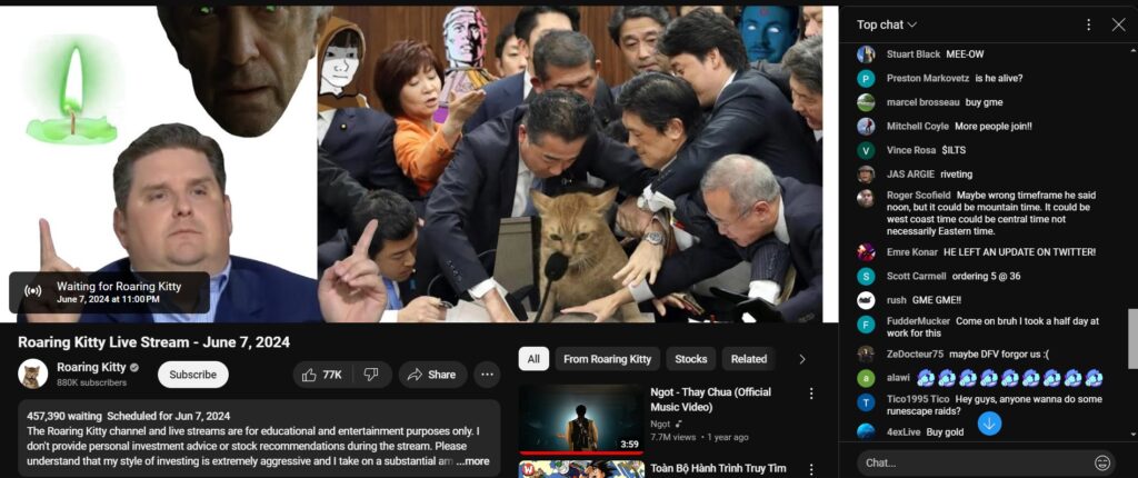Gần nửa triệu người chờ đợi buổi livestream của Roaring Kitty vào 11h đêm thứ Sáu 7/6.