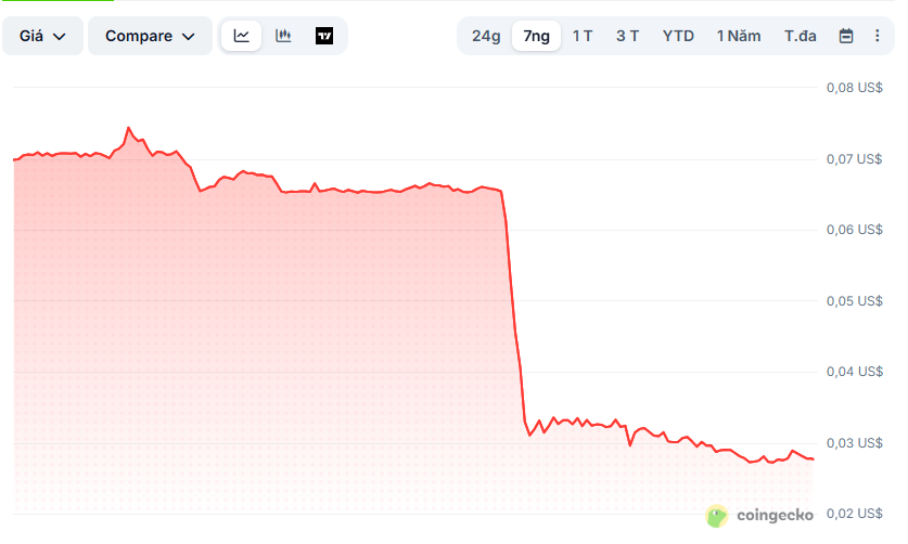 Thị trường crypto vừa chứng kiến một cú sập khiến nhiều nhà đầu tư “trở tay không kịp” khi Core lao dốc hơn 53% chỉ trong 24 giờ, rơi thẳng xuống vùng ~0,031 USD. Sau đó rơi dần tiếp xuống vùng 0,027 USD