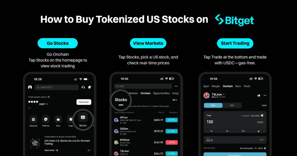 Hướng dẫn cách giao dịch cổ phiếu token hóa trên Bitget Onchain?