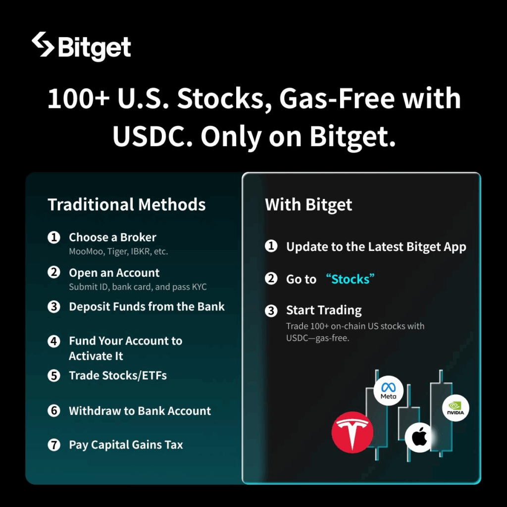 Giao dịch cổ phiếu Hoa Kỳ truyền thống so với giao dịch cổ phiếu Hoa Kỳ trên Bitget Onchain