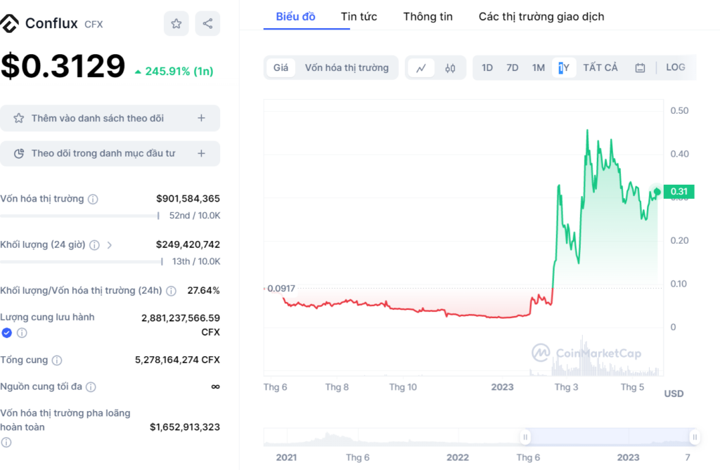 Ngoài ra, token có nguồn cung cấp tối đa là 5,28 tỷ CFX sẽ hết sau 4 năm và tokwn cũng bao gồm tính năng staking với mức lãi khiêm tốn là 4% APR. Quỹ hệ sinh thái, chiếm 40% token CFX, được sử dụng để tài trợ cho các giao dịch và phần còn lại bị đốt cháy. Cho đến nay, họ đã đốt hơn 16% nguồn cung với đề xuất tăng cường đốt token tiền điện tử CFX.