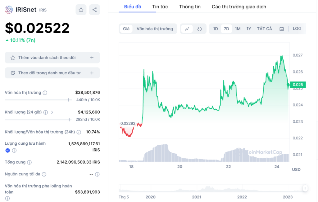 IRIS là Blockchain PoS layer-1 được xây dựng trên Cosmos SDK và được phát triển bởi một số nhà phát triển từ Tendermint, nhóm đứng sau Cosmos SDK. Phần thưởng staking cho IRIS hiện vào khoảng 6,8% một năm. IRIS cũng có một công cụ phái sinh liquid staking do StaFiHub tạo ra có tên là rIRIS.