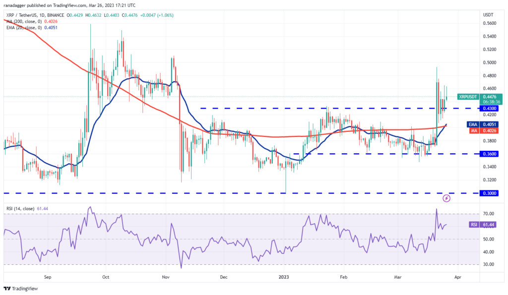 XRP hiện tại đang được đặc biệt quan tâm như một tài sản có hiệu suất cao nhất trong số hàng trăm loại tiền điện tử hàng đầu, với mức tăng ấn tượng 22% trong 7 ngày qua và đang giao dịch ở mức $0,4673 vào ngày 27 tháng 3.