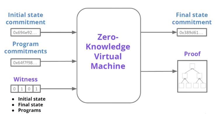Giống như EVM, zkEVM là một máy ảo chuyển đổi giữa các trạng thái sau khi thực thi chương trình. Nhưng zkEVM còn đi xa hơn bằng cách tạo ra các bằng chứng không có kiến thức (ZKP) để xác minh các yếu tố khác nhau trong mỗi phép tính: